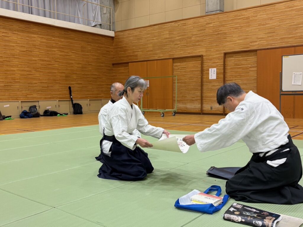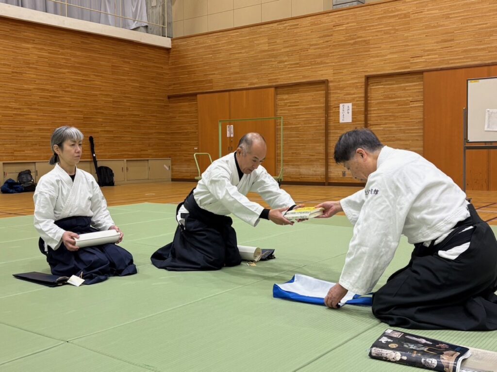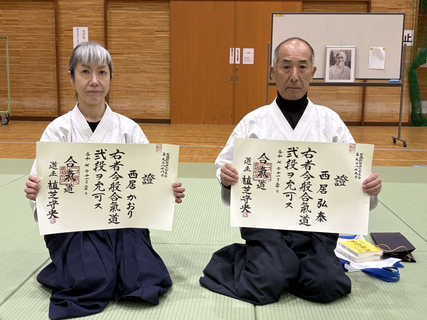 2026/01/15 2025年11月度昇段者報告 会員連絡 2026/01/15 弐段の昇段審査を致しました。その結果、西居氏ご夫妻が合格されました。おめでとうございます。本部から各段位の道主允可證、本会から記念品の授与がなされました。今後、より一層の精進を期待致しております。2026年5月の全日本合気道演武大会、合気道近江代表としてよろしくお願いします。